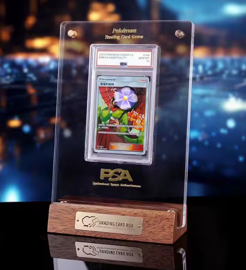 Premium PSA Acryl Kartenhalter mit Holzsockel & UV-Schutz – Edles Display für Sammelkarten
